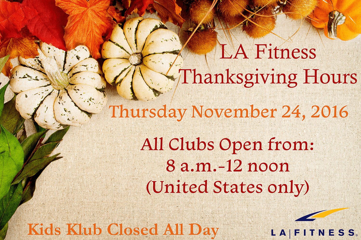 La Fitness On Twitter Enjoy Your Thanksgiving Day Reminder La Fitness U S Club Hours For Today Are 8am 12pm Kids Klub Will Be Closed All Day Https T Co Vo9yb3tftu Twitter